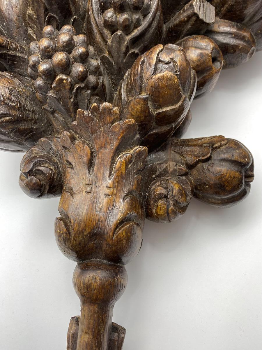 An impressive antique oak carved fruit bouquet or cornucopia with different fruits and pomegranate.