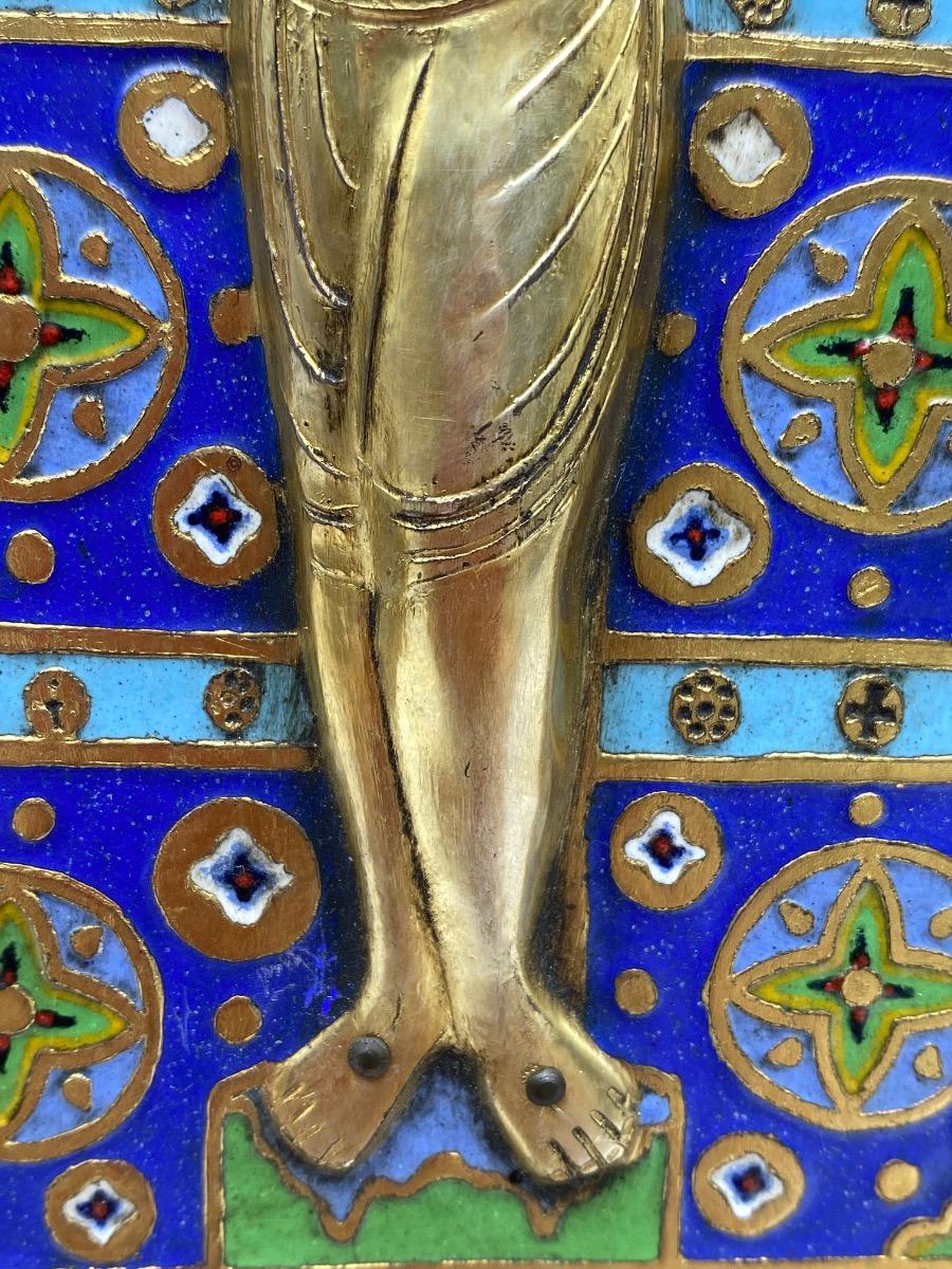 Limoges style Haute Epoque Ojer enameled crucifixion plaque