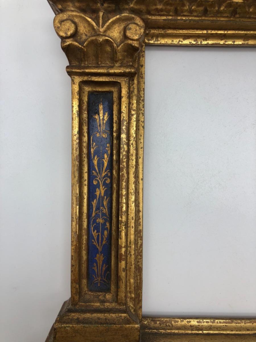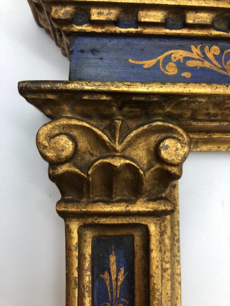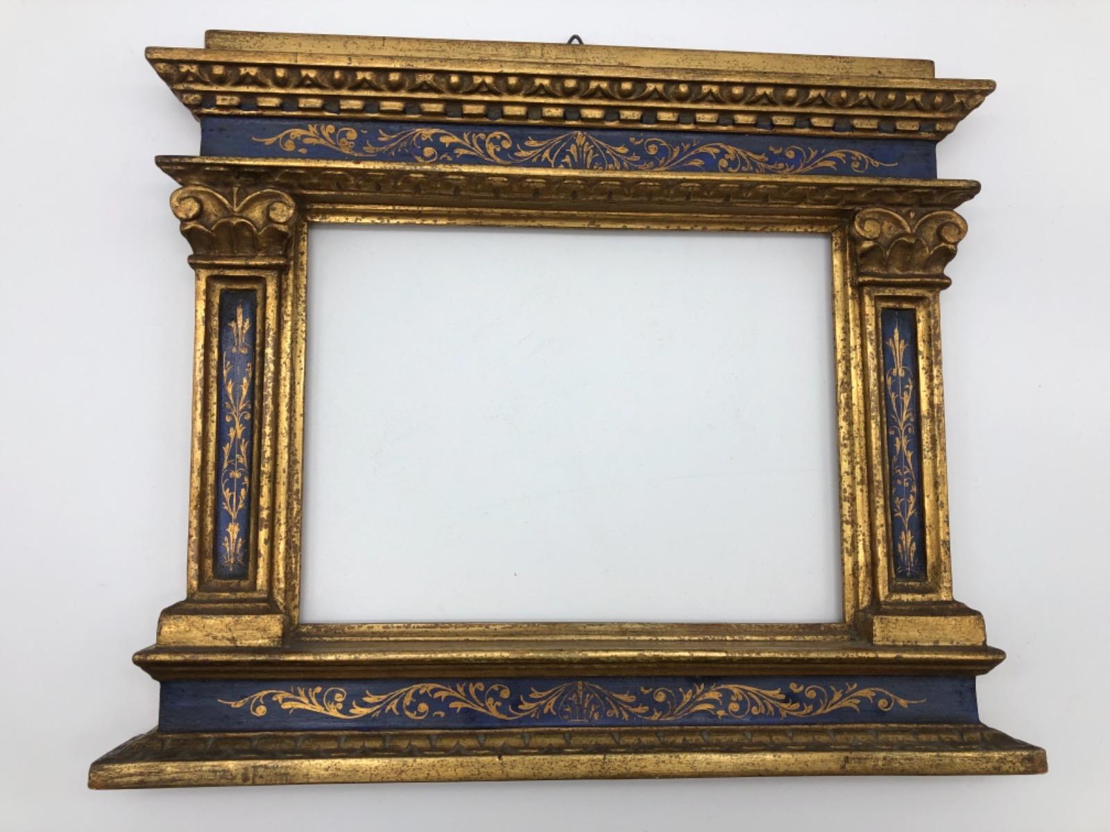 Antique Italian Tabernacle wooden gilded polychrome frame with Renaissance columns