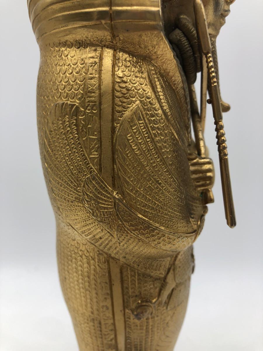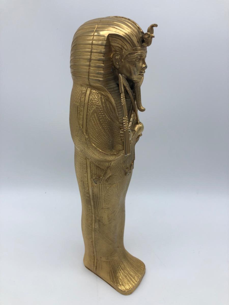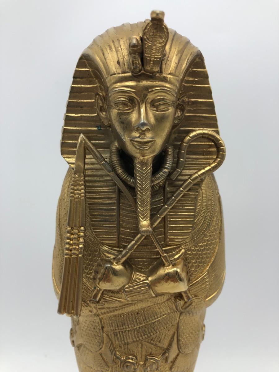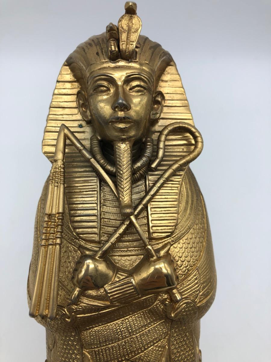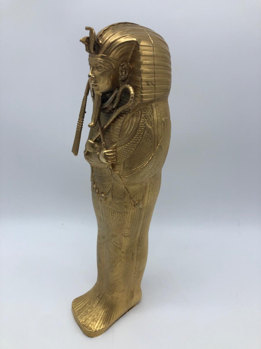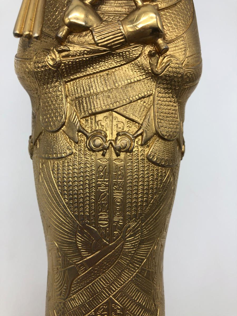 Possibly in cooperation with the MET, a very finely made detailed metal gold plated exact statue of the inner sarcophagus of Tutankhamun. In very good condition, little wear. Probably 1950-1975.