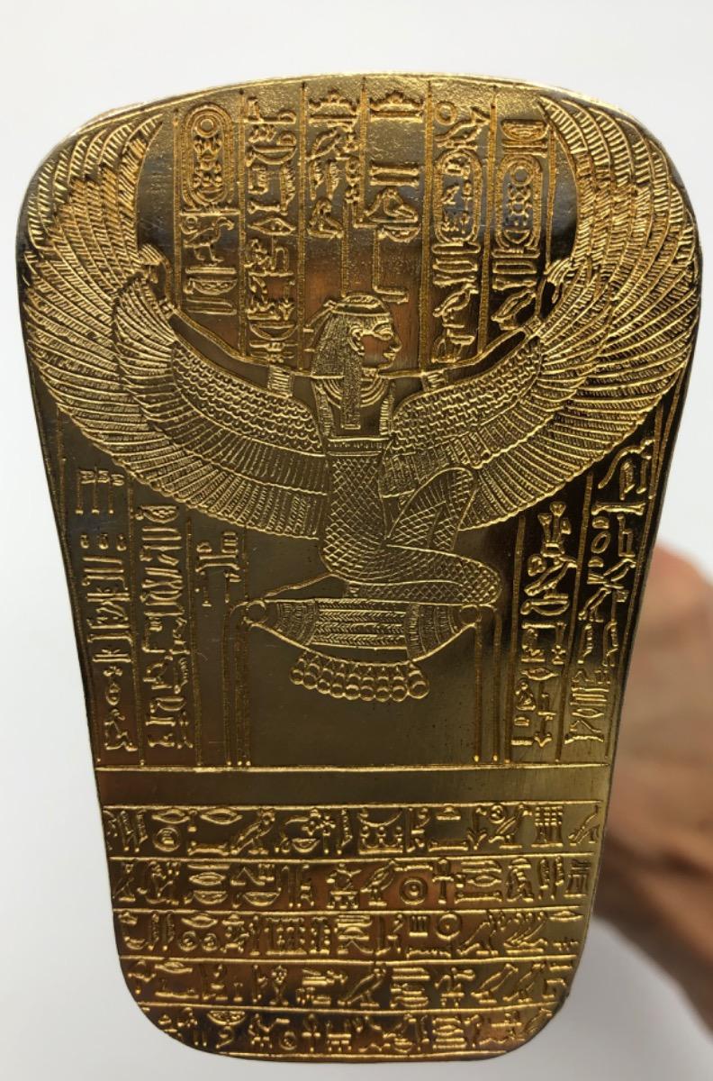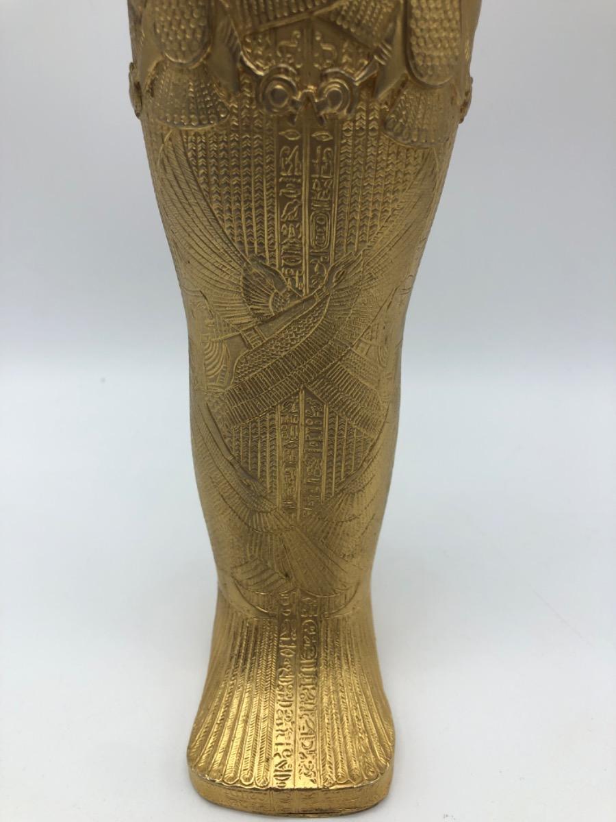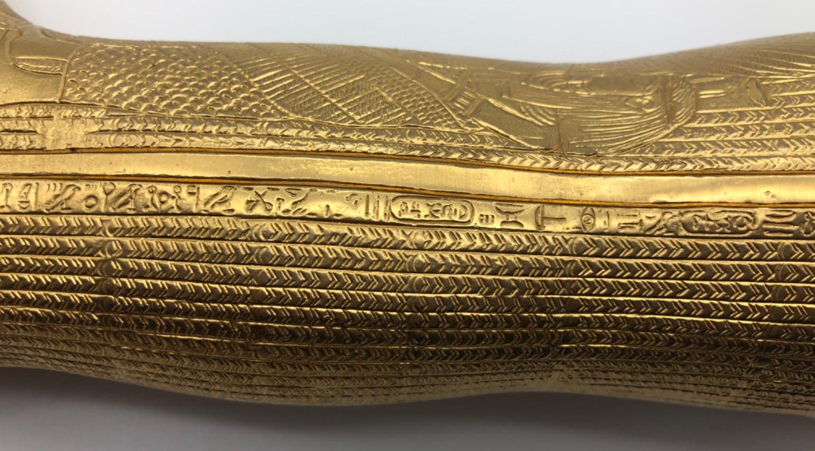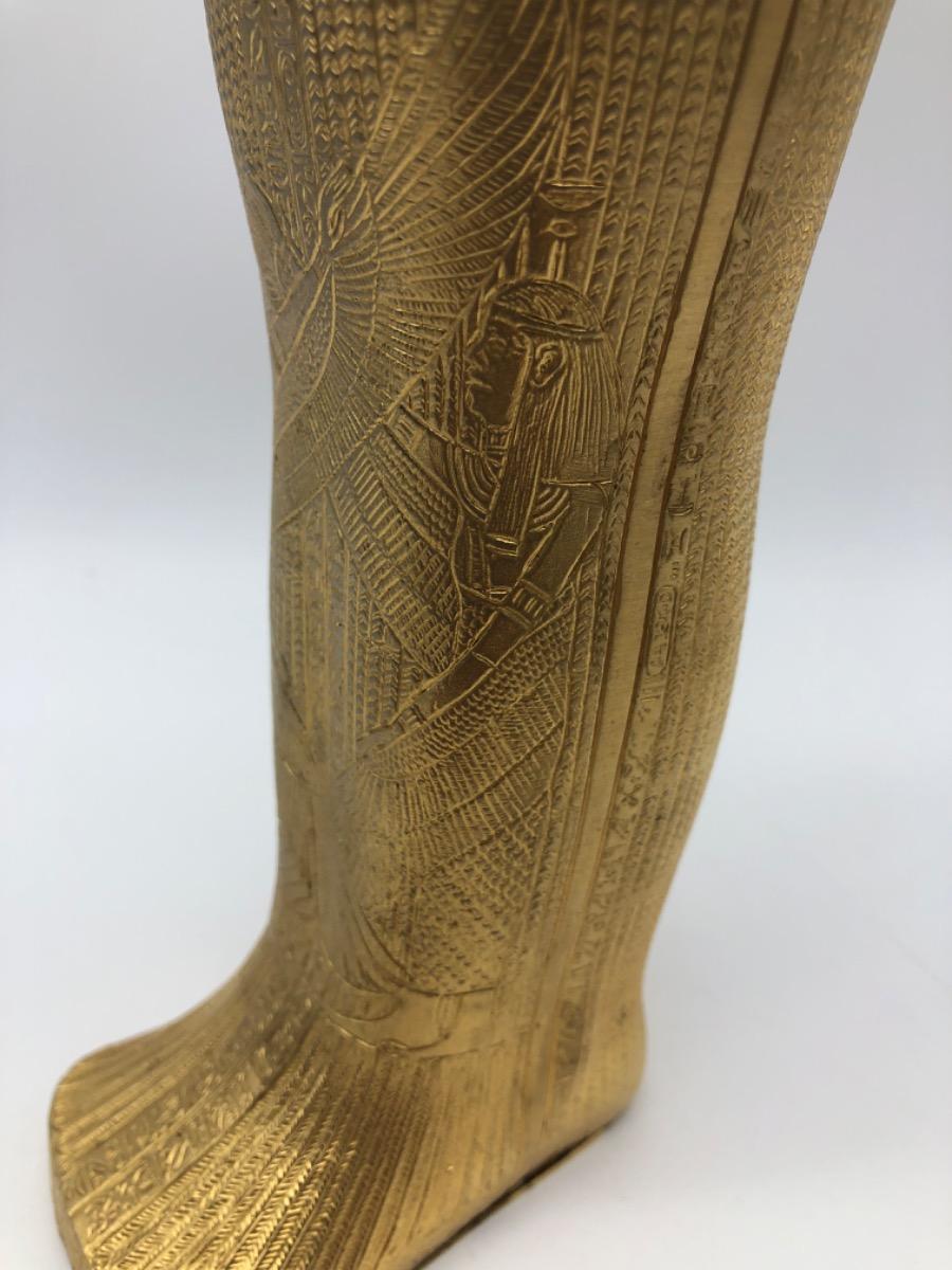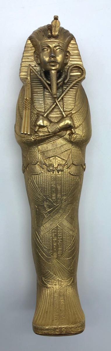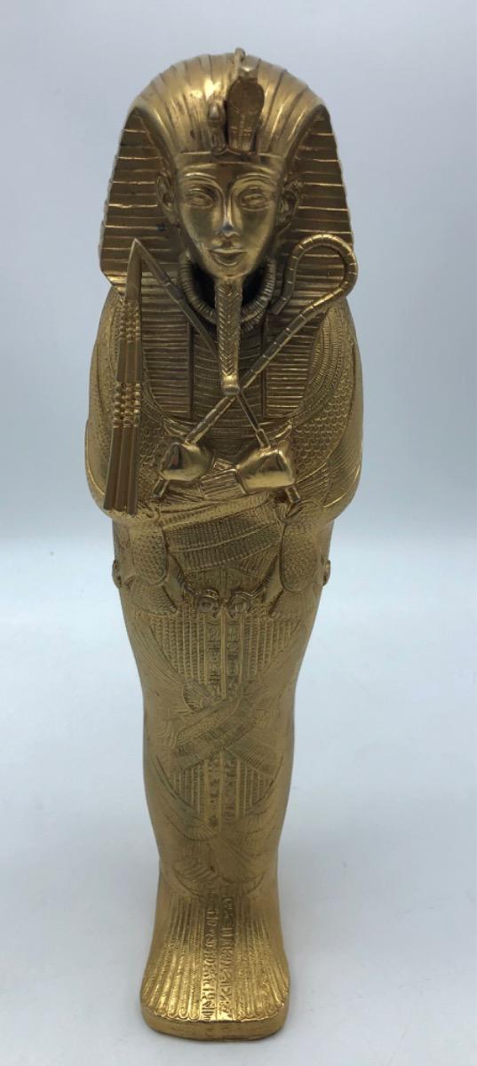 Possibly in cooperation with the MET, a very finely made detailed metal gold plated exact statue of the inner sarcophagus of Tutankhamun. In very good condition, little wear. Probably 1950-1975.