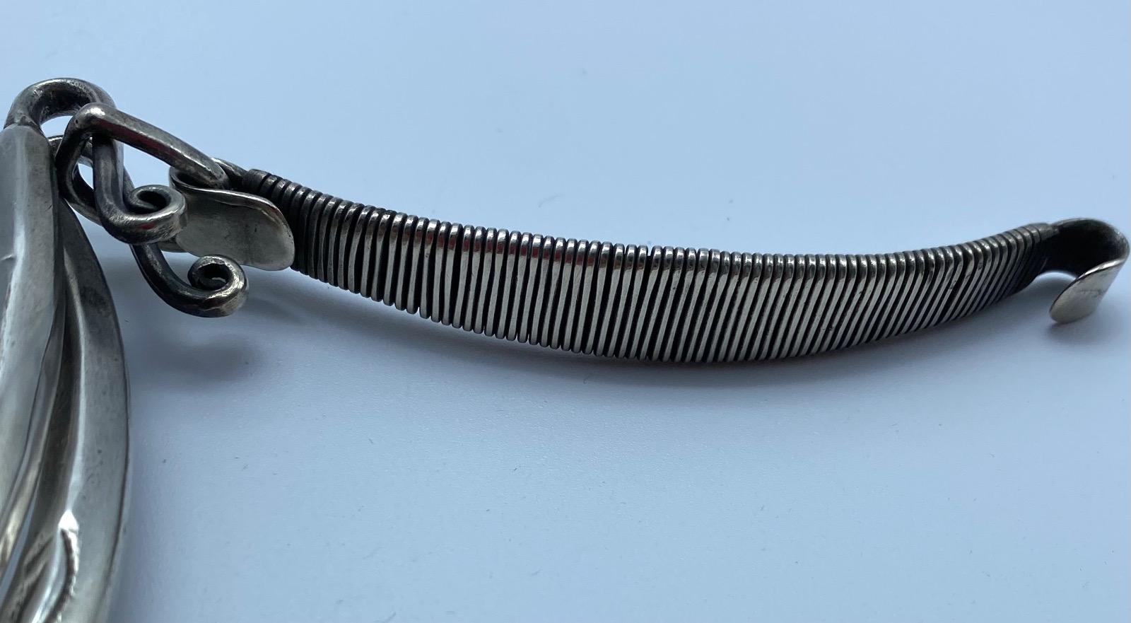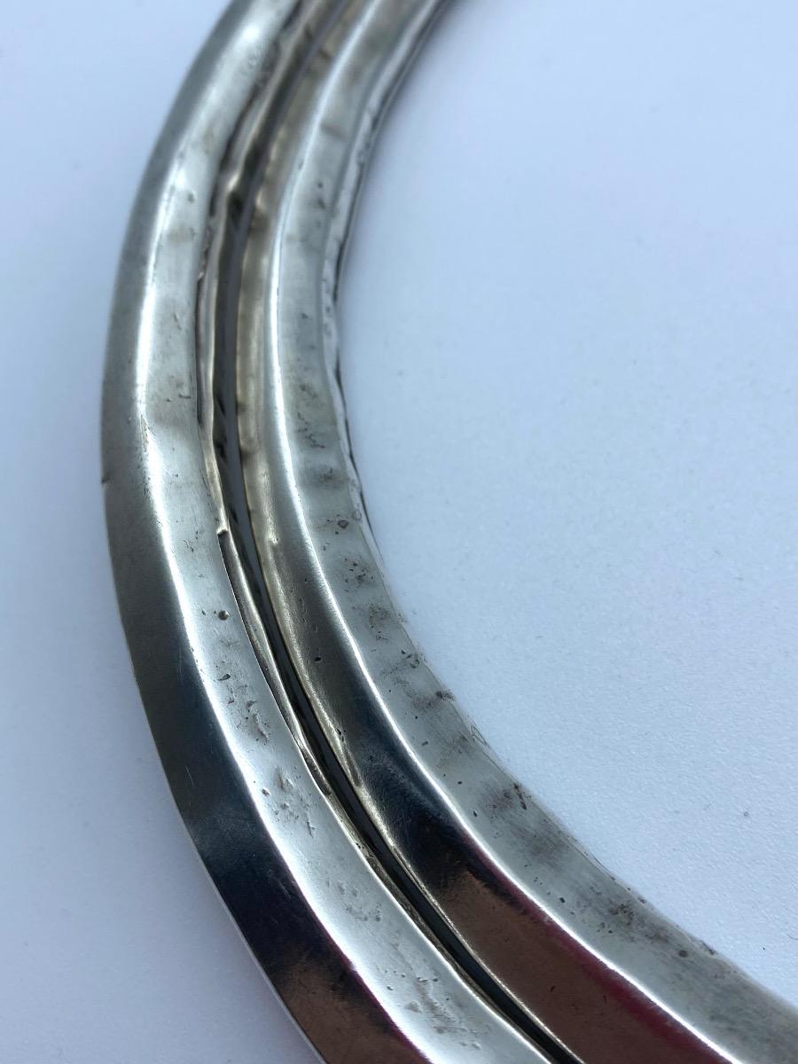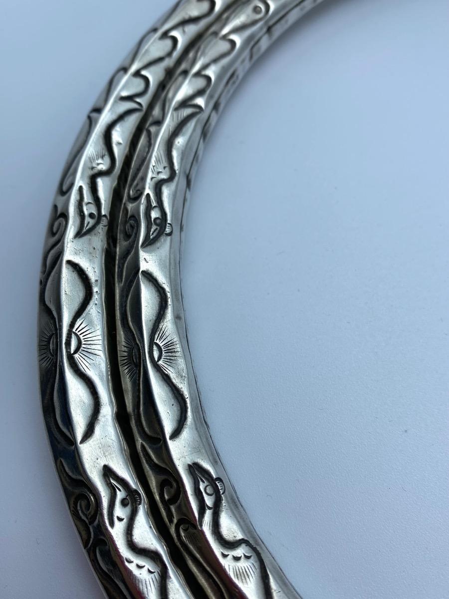 A high quality silver alloy (mostly between 40-60 % silver with nickel) dubbel ringed heavy necklace in very good condition classically decorated with stylized dragons.