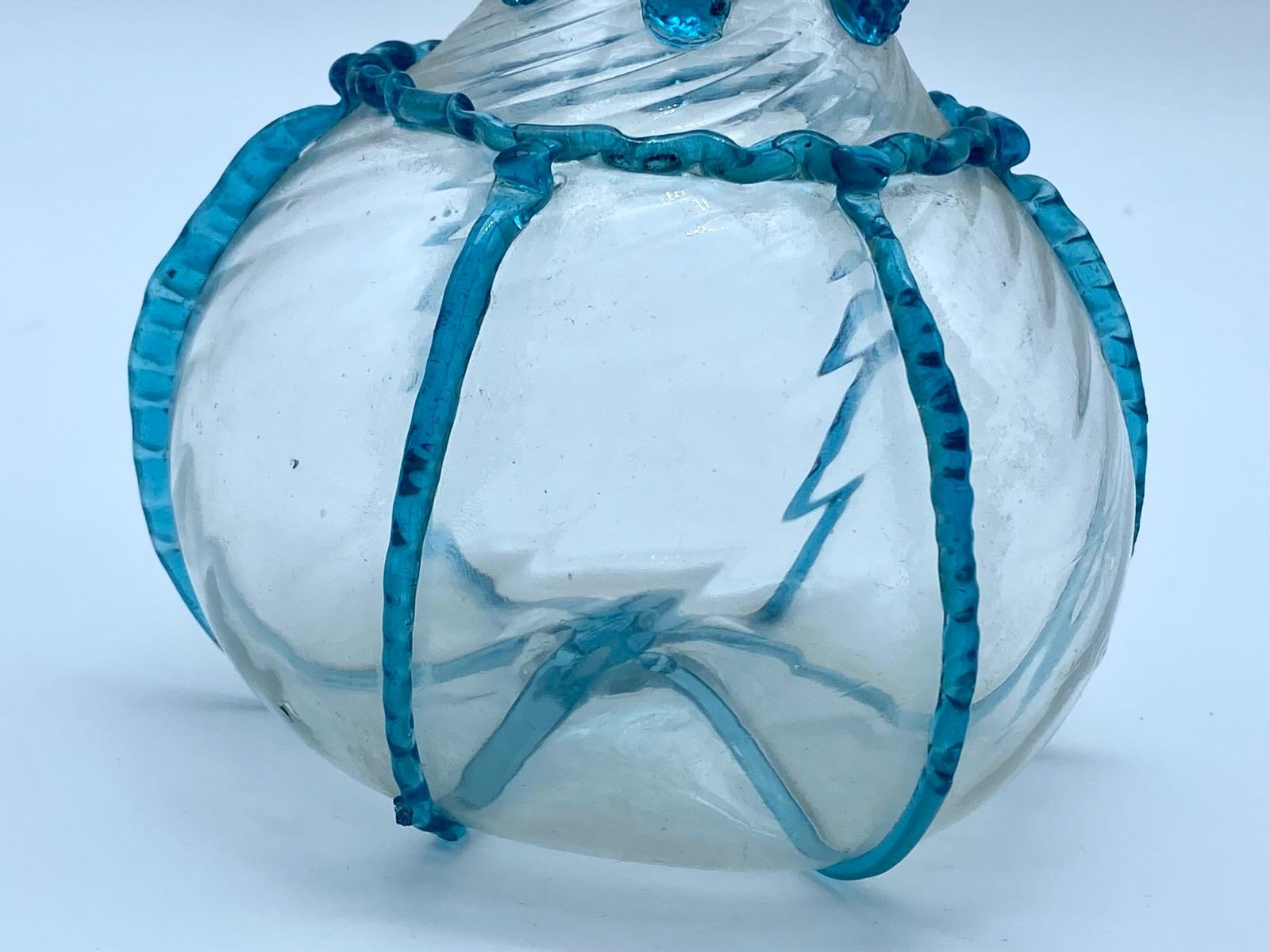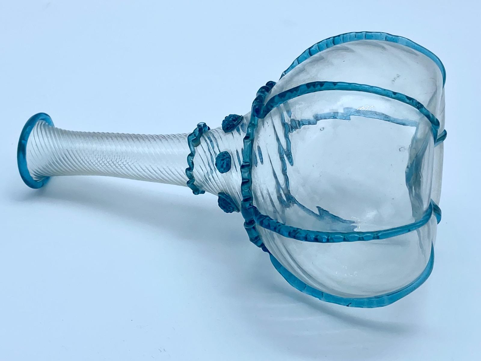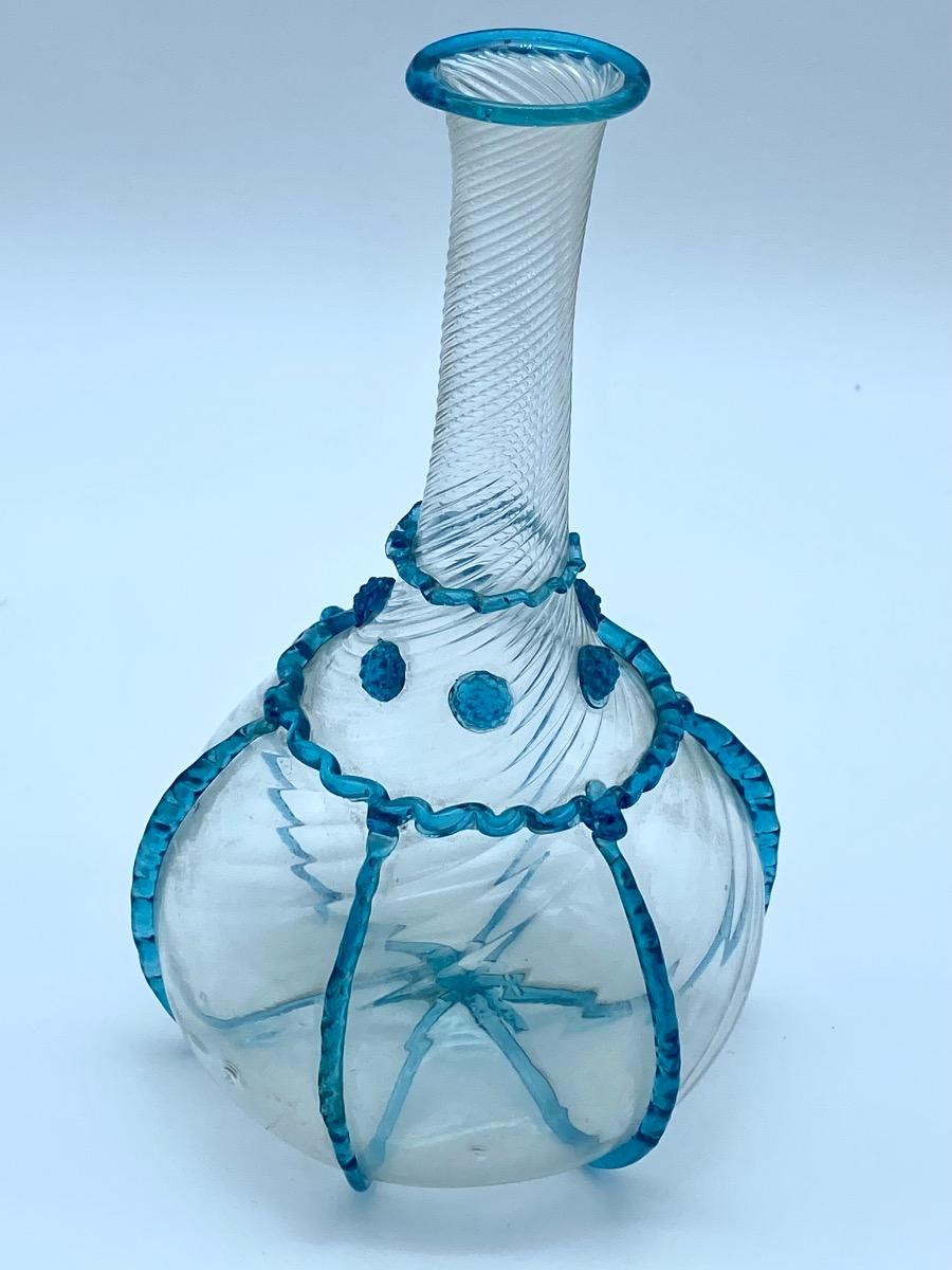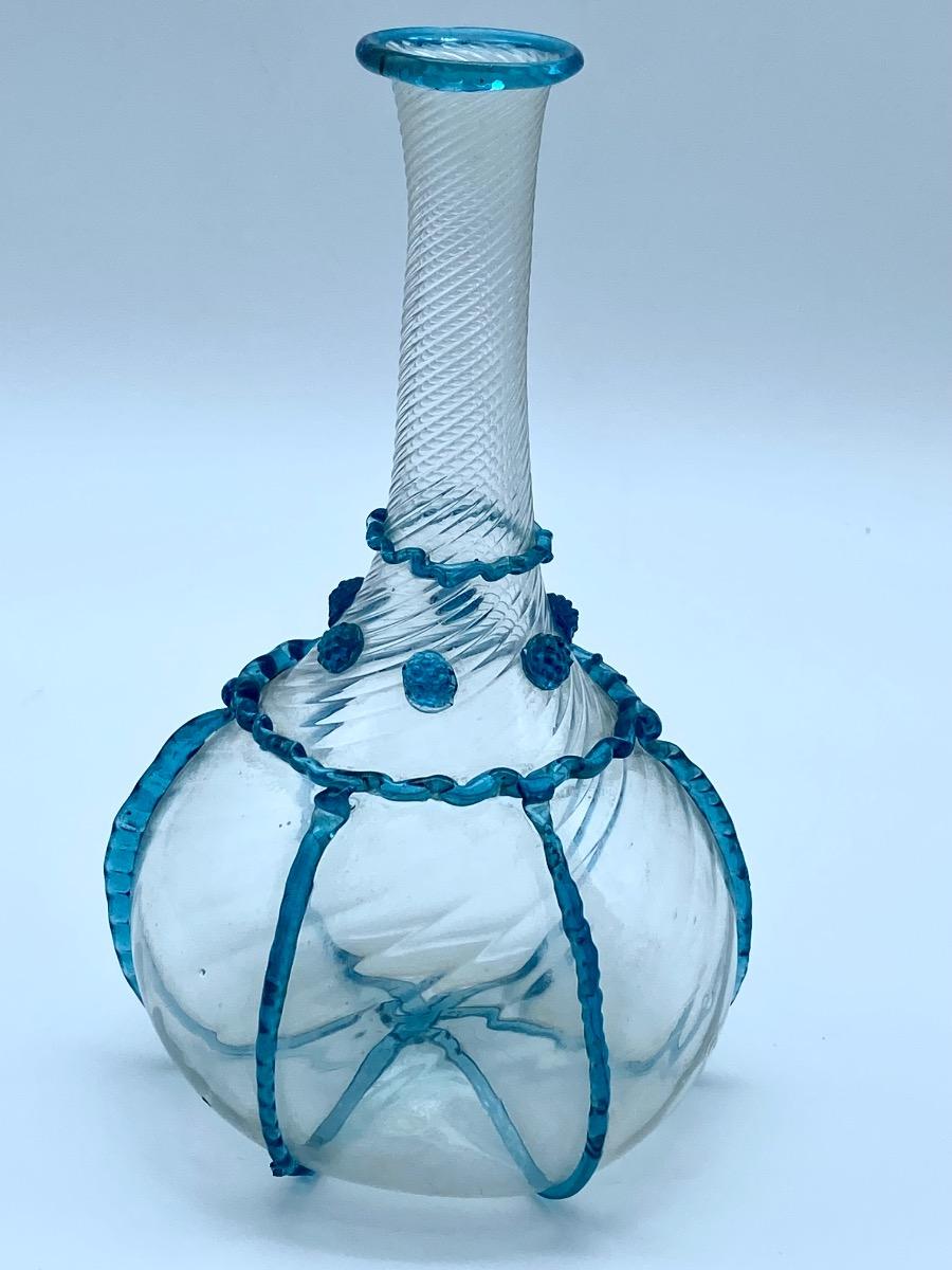 18th century Italian Venice Murano clear glass and blue trimmed antique bottle