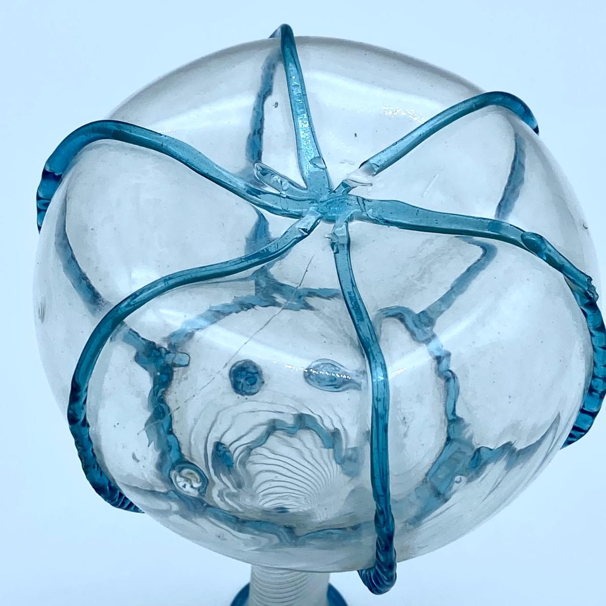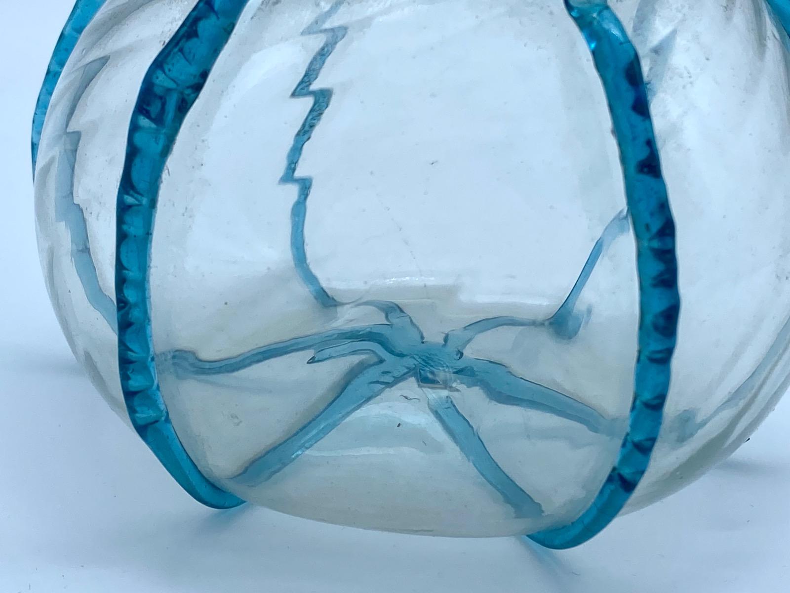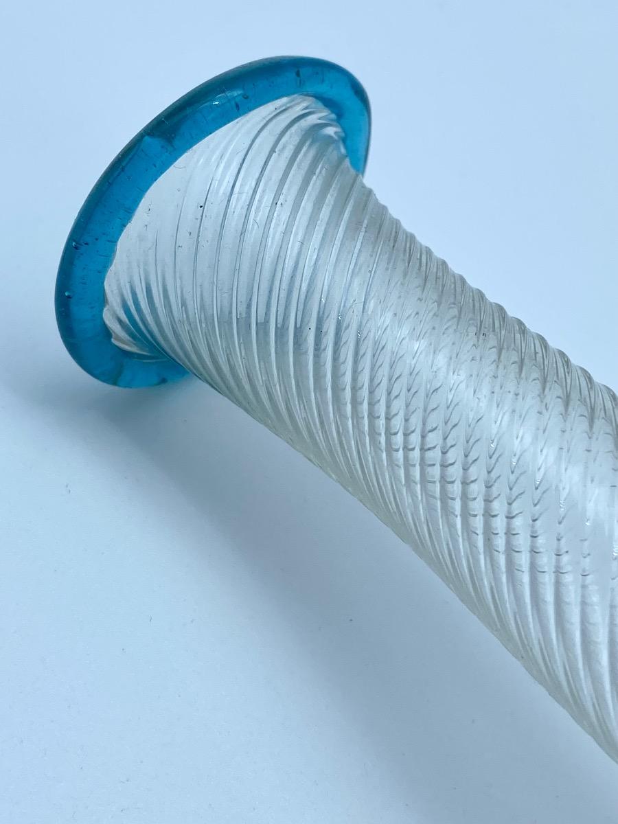 18th century Italian Venice Murano clear glass and blue trimmed antique bottle
