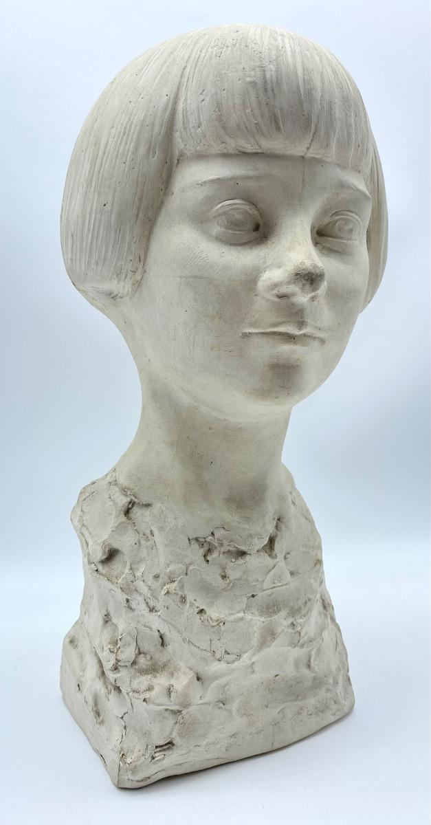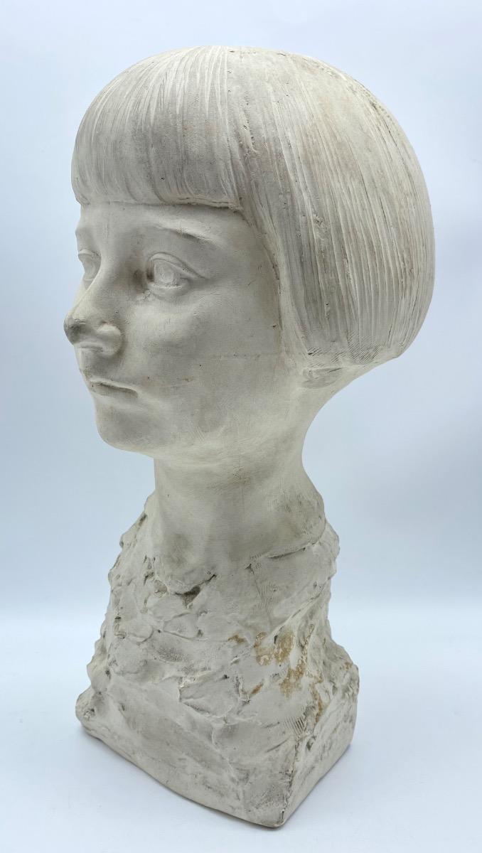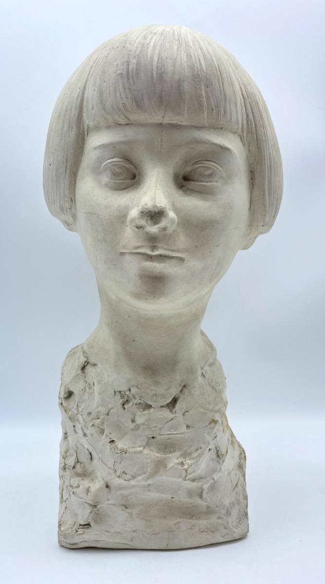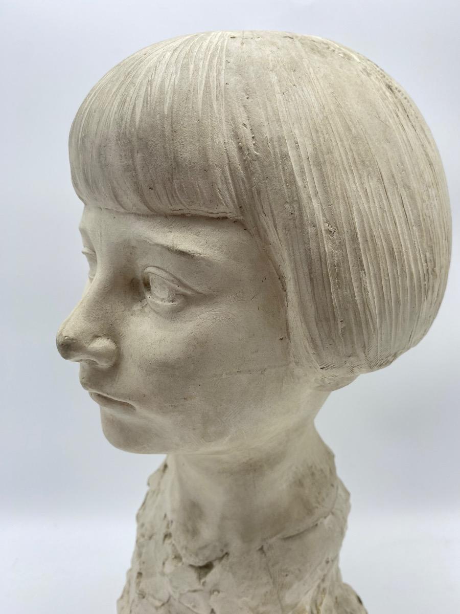 1928 Belgium Léon Gobert (1869-1935) Plaster Art Deco bust of an girl