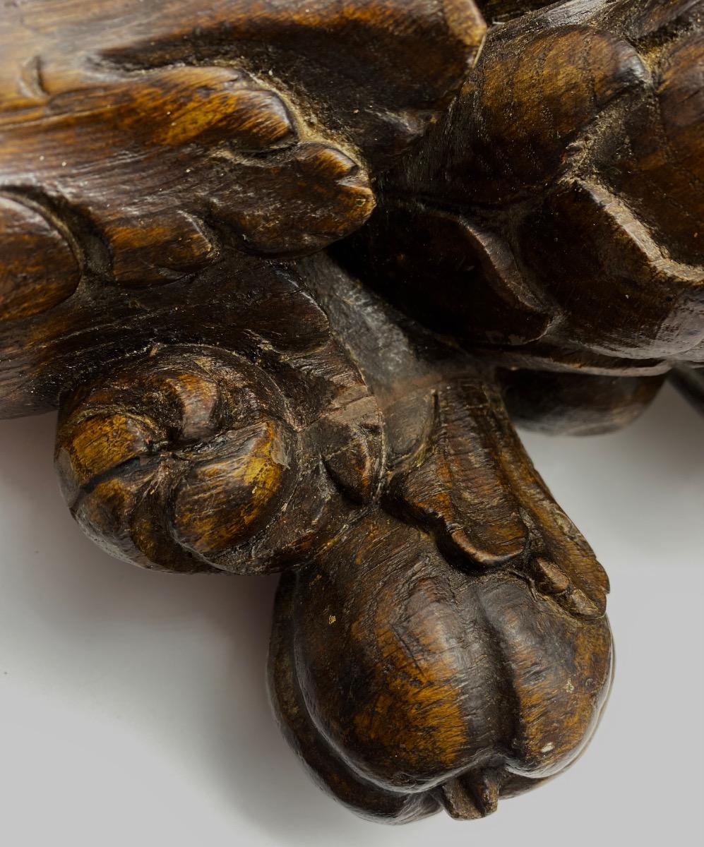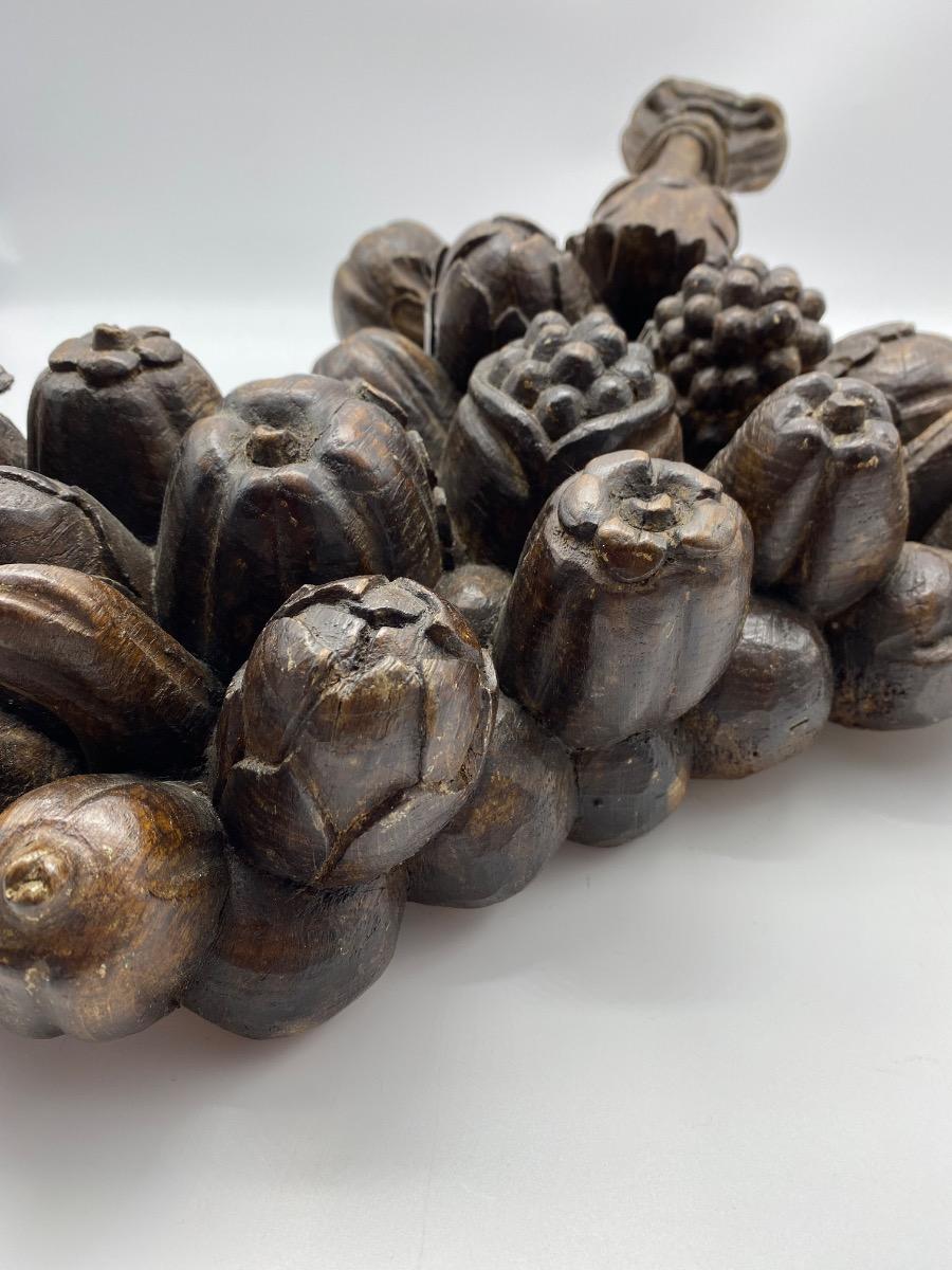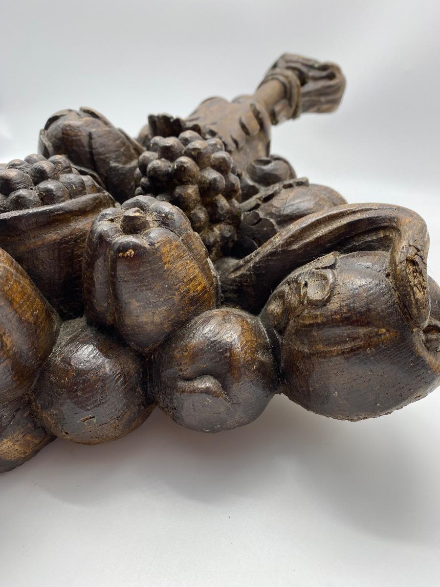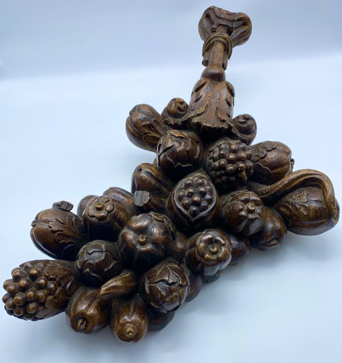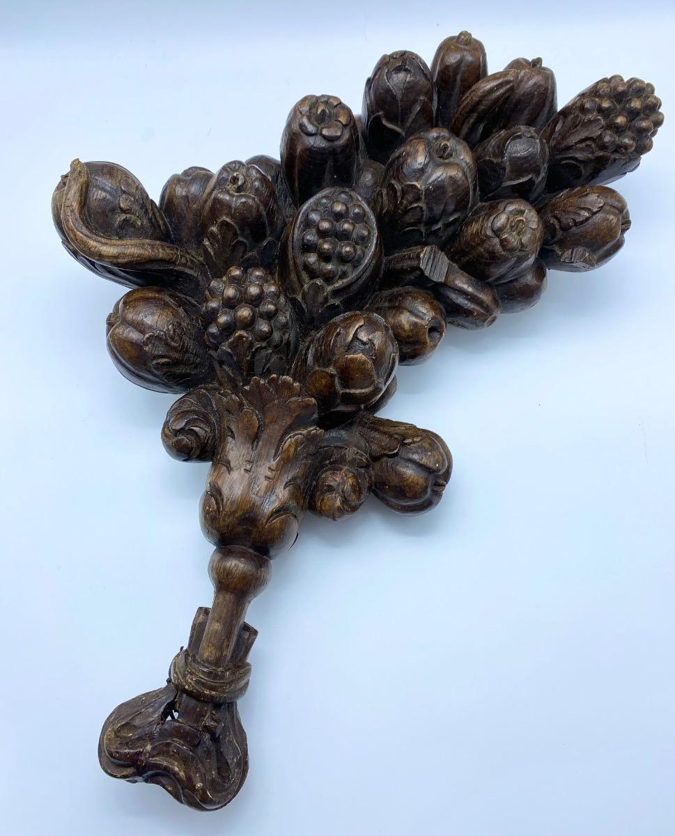 An impressive antique oak carved fruit bouquet or cornucopia with different fruits and pomegranate.