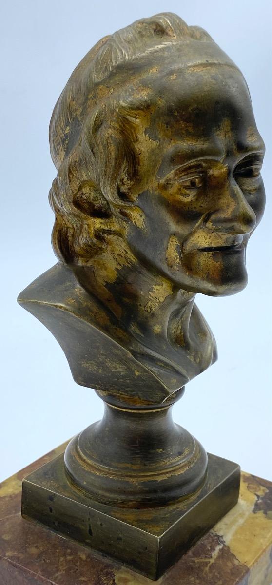 After the original by Jean-Antoine Houdon (1741-1828) a bronze bust of the philosopher Voltaire.