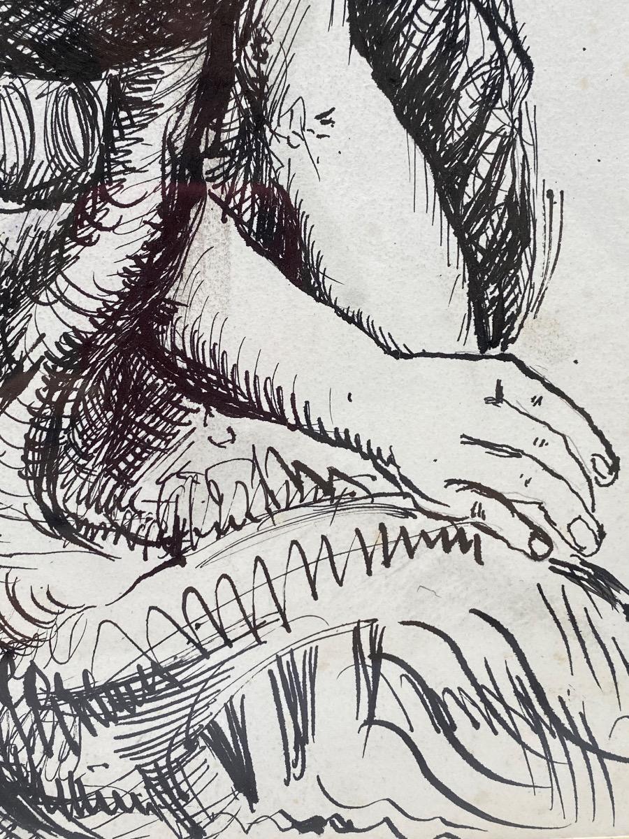1925 signed Marcel Gromaire drawing of a seated woman ink on paper