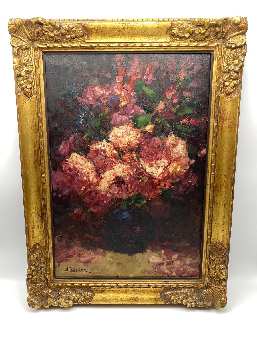 Alfred Théodore Joseph Bastien (Belgian 1873-1955) oil painting flower roses still life on canvas
