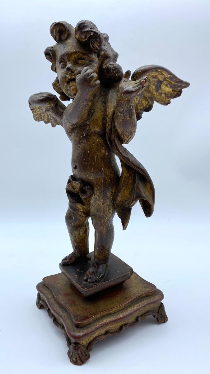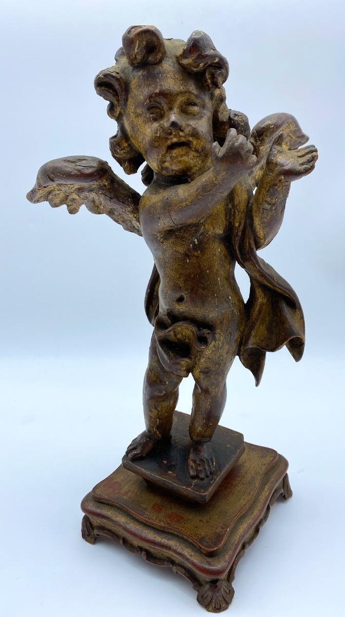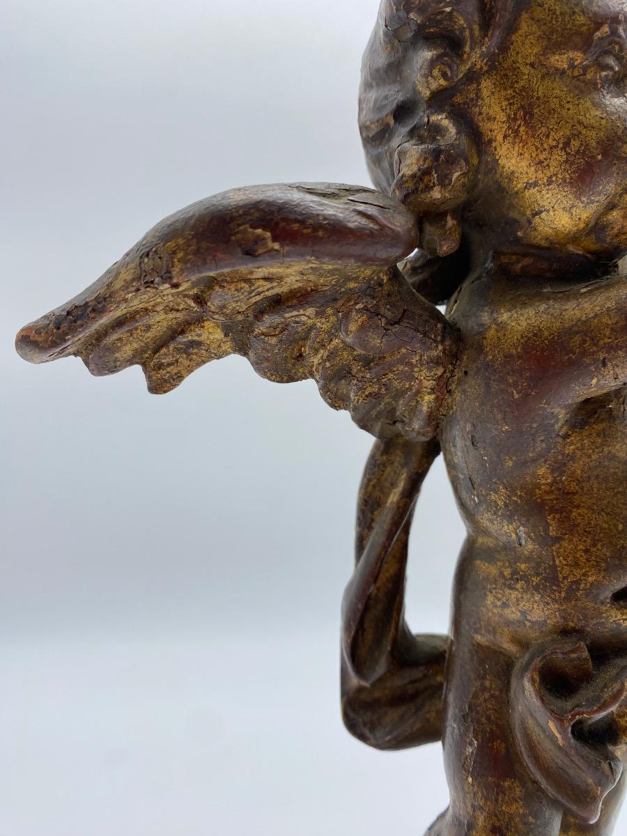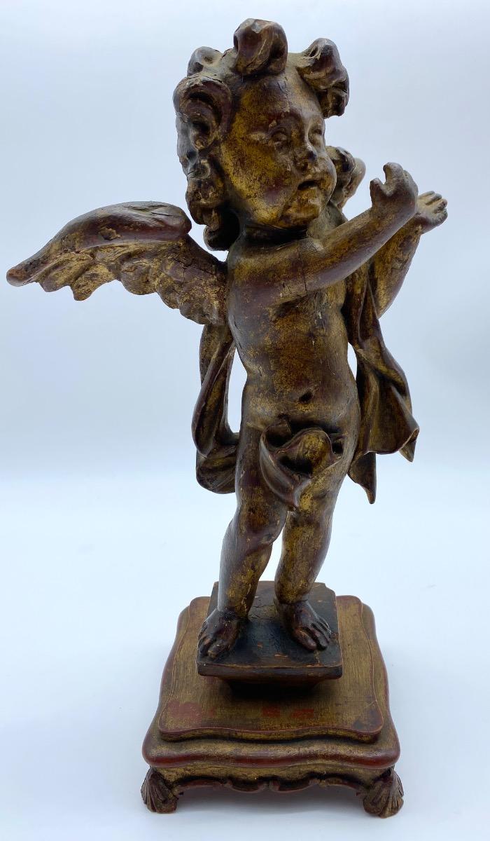 The angel is in good condition for it's age. Normal wear, some loss of the gilding and other possible minor repairs but a lovely patine and bodily expression.
