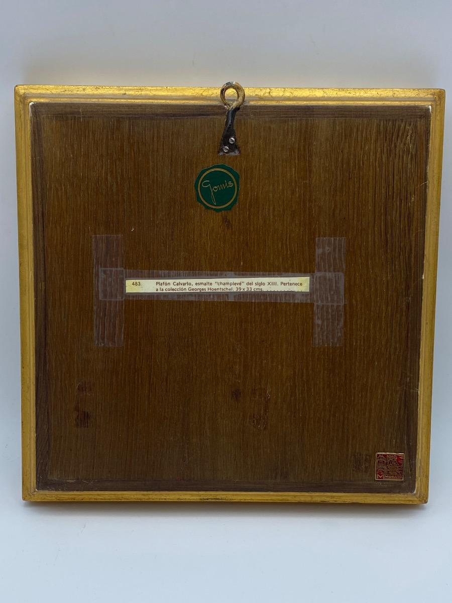 Modest Morató Ojer (Barcelona 1909-1993) Enameled copper plaque Limoges style Haute Epoque Crucifixion