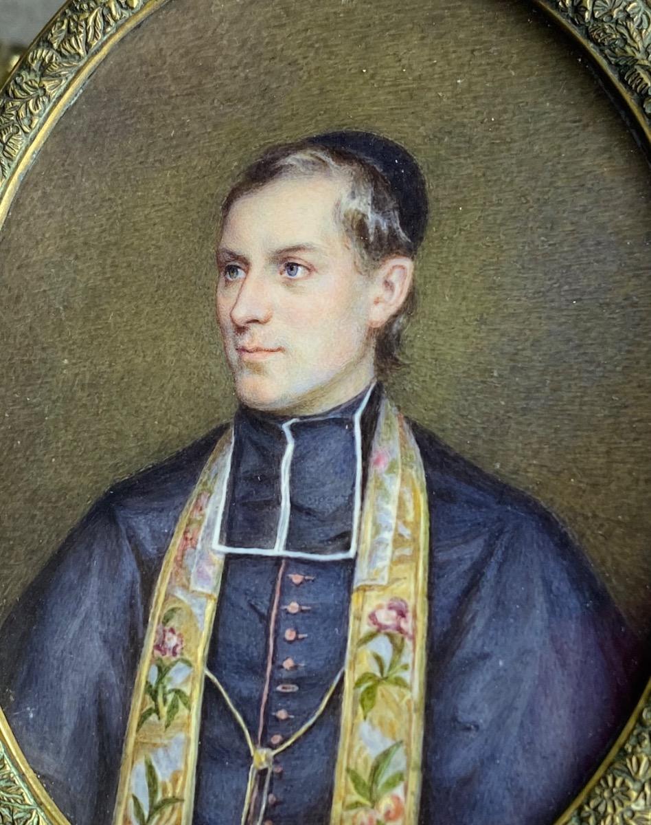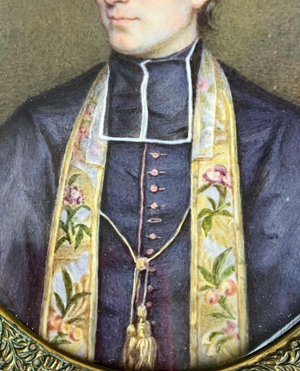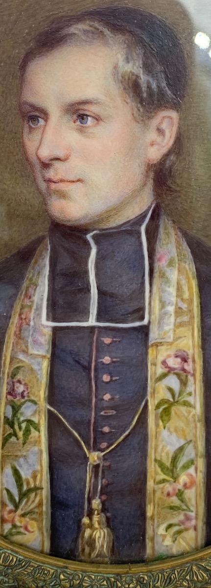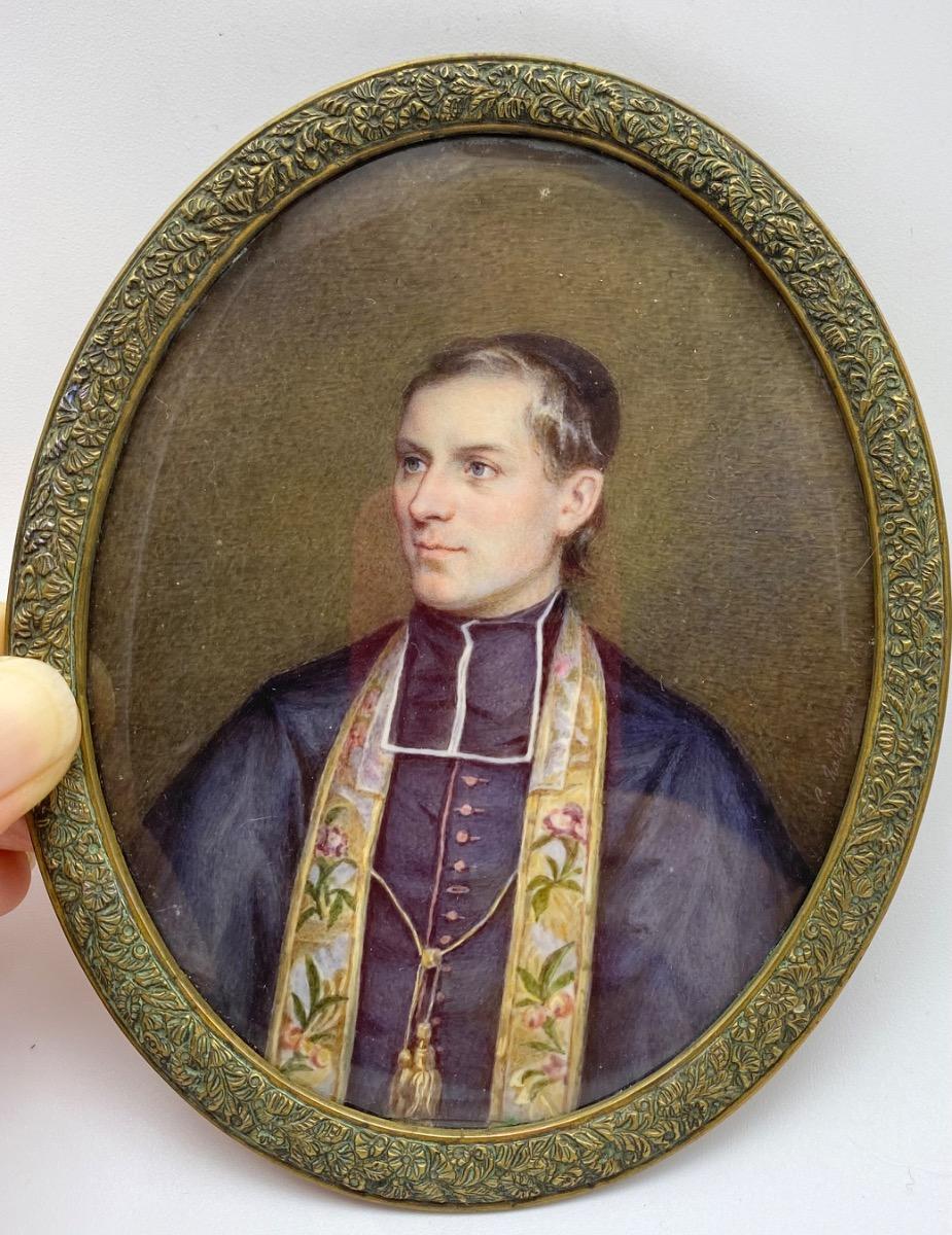 XIX Antique large miniature portrait painting of a clergyman by Caroline-Anne Haillecourt 1851