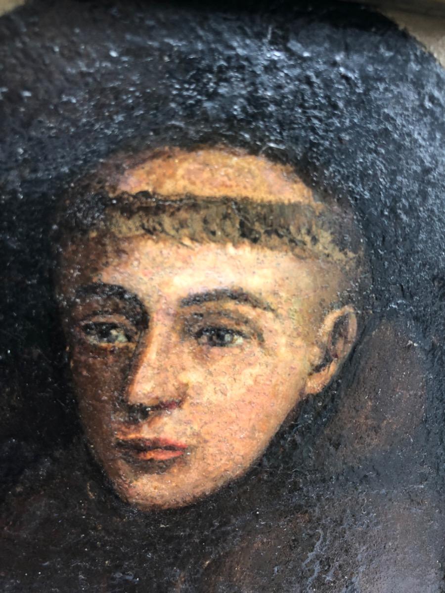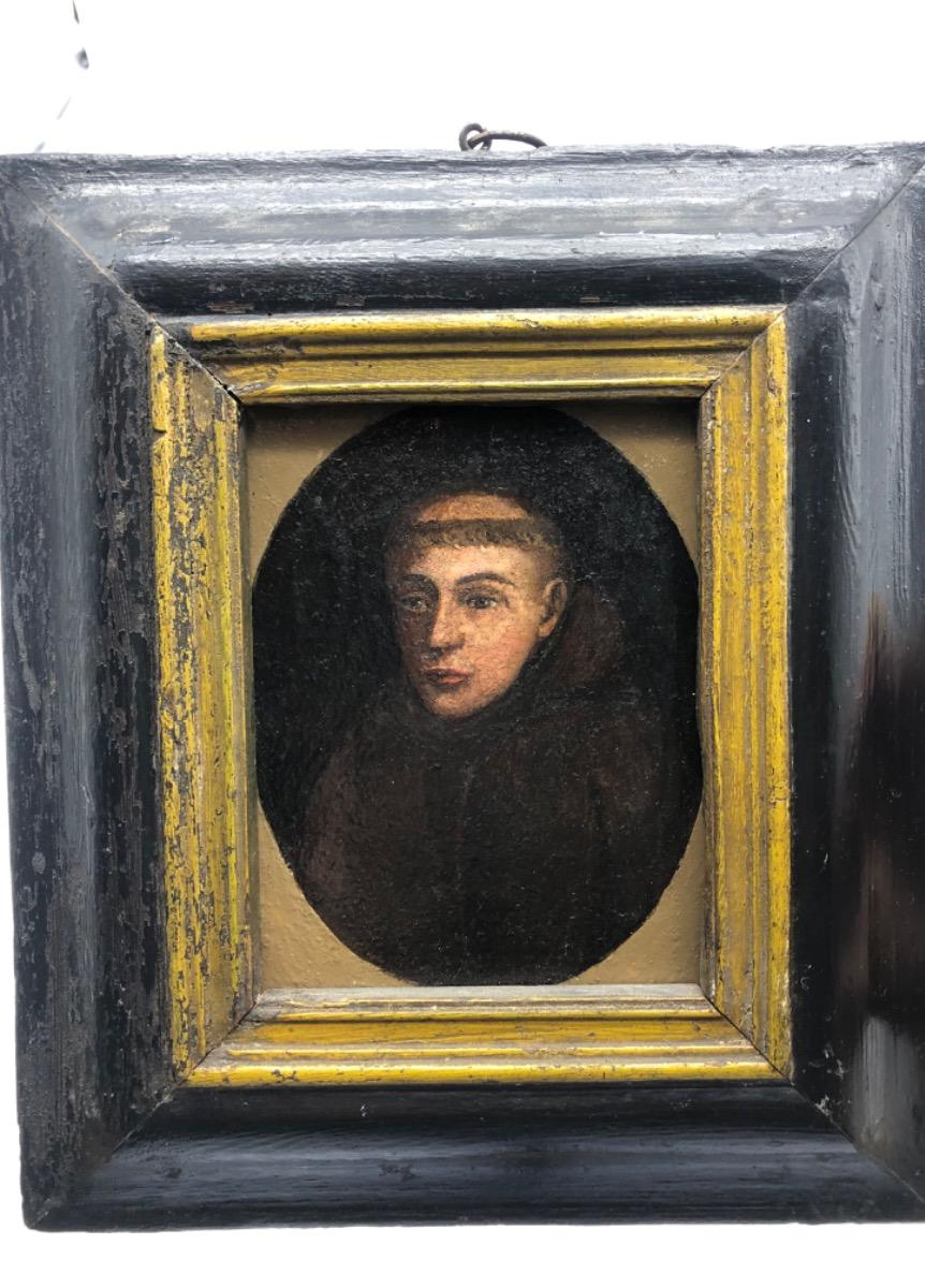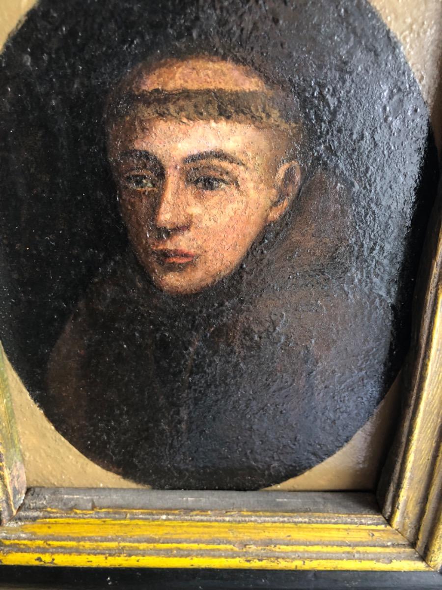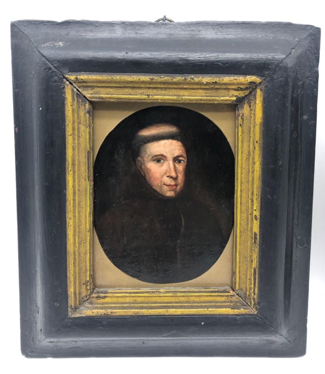 XVII Antique pair of oil paint portraits of Benedictine monks